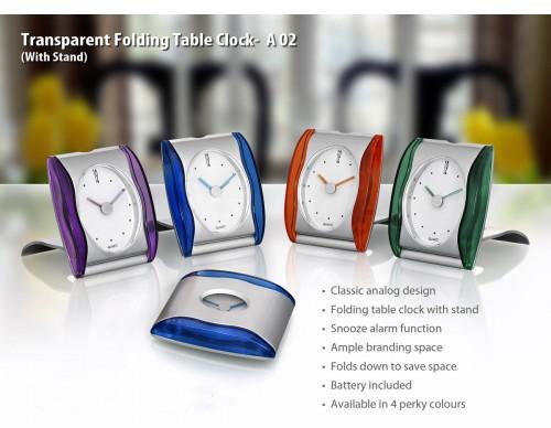 It is a Transparent folding table clock comes with its stand. It has a classic analog design. It has a snooze alarm function. It is along with battery & comes with a huge branding area for your promotional activities.