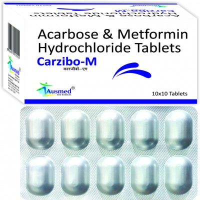 INDICATIONSÂ Acarbose+Metformin is used in the treatment of type 2 diabetes mellitus. Acarbose + Metformin is a combination of two antidiabetic medicines: Acarbose and metformin. Acarbose works by slowing down the reakdown of complex sugars into simpler sugars.Â
