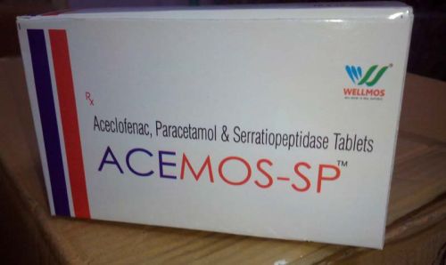 ACEMOS - SP is combination of Aceclofenac 100Mg, Paracetamol 325 mg & Serratiopeptidase 15 Mg ( 30000 Enzymatic units Enteric Coated Granules).
