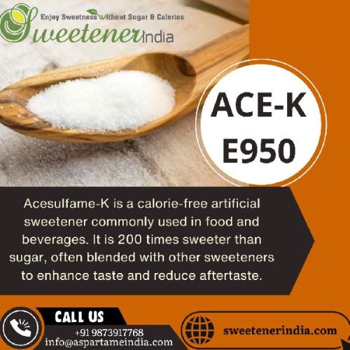 Contact SupplierBuy Anhui Jinhe Acesulfame-K (Ace-K) at the best price in Mumbai for your food, beverage, nutraceutical, bakery, protein powder, and pharma applications. Acesulfame-K is 200 times sweeter than sugar, calorie-free, and enhances the taste without any aftertaste.