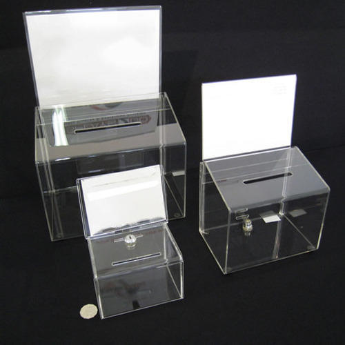 As a quality driven enterprise, we are engaged in providing a beautiful range of Acrylic Donation Box With Sign Holder. Features : Superior finish Crack proof Light in weight Other Details : Use for NGO Donation, Collection, Suggestions, Competition Entry, Cheque drop, etc. Material - Acrylic