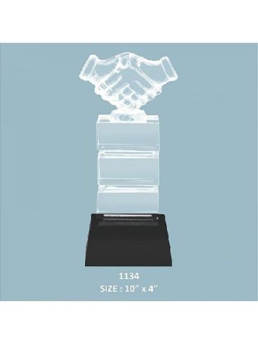 Transparent Acrylic Trophy with Black Acrylic Base, Brick style pillar & Crystal hand shake on the top Transparent Black - INR 750/pc Premium and high quality trophies and awards.\ Size Available: Small, Medium, Large. Fully customized. Price may vary according to the design.