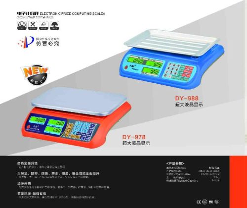 Max capacity:30kg,40kg display:led lcd battery:acdc dry battery division:2g,5g moq: 200pc features: 1. Auto zero point tracking 2. Tare function 3. Energy-saving function 4. Low power and charging status indication 5. Dual-side ledlcd backlight display 6. Dry battery and acdc power 7. Adjustable and nonskid rubber feet 8. Runs on rechargeable battery