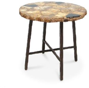 ACT20-PETRIFIED WOOD ROUND ACCENT TABLE