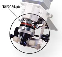 Adds Versatility to your RH head by adapting it to any Q pump drive. This is a complete adaptation system that permits use of an RH miniature pump head on any Q drive module. Once the RH pump head is fitted (3 screws) to the kit parts, it can be slipped into place on the drive module in seconds without tools. To remove it, simply loosen the two thumb nuts of the motor base and slip it off.