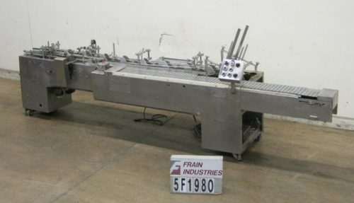 Contact SupplierSemi-automatic, stainless steel, horizontal, intermittent motion, hot glue cartoner rated up to 60 cartons per minute – depending on materials and application. Carton size range: 2" to 8" in Length; 34" to 4-12" in Width; 5" to 10" in Depth. Equipped with 4 chains adjustable, set on 12" centers with 4" wide x 3" high lugs, blank carton magazine, reciprocating suction cup pic-n-place, 96" long with two 4-12" wide delren chain in feed conveyors, 36" long hand load area, hot glue wheel applicators, major and minor flap closers, self contained vacuum system, foot pedal, and e-stop. Mounted on casters.