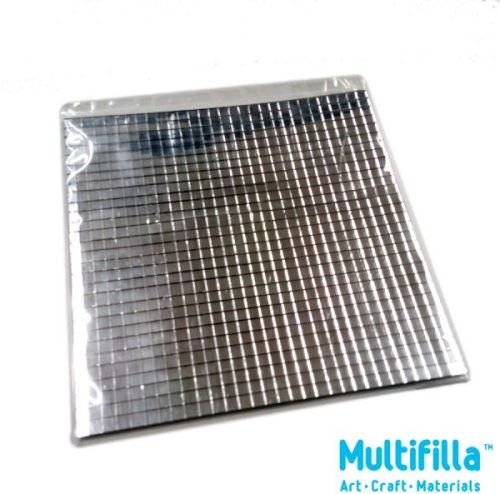 Real glass mirror approximately 1.5mm thick in squares of 5mm x5mm. These adhesive backed glass mosaics can be cut into strips or shapes as architectural scale model, cards, resin cast inlay and many other unusual crafts application like candle decoration, papier mache.
