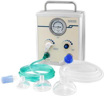 Inside an alarm system of differential pressure. When alarming, the safety valve starts automatically, and produces the mixture gas continuously to ensure the safety of patients,
