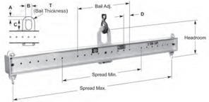 Adjustable Lifting Beam (DALB) Features • Adjust bail for unbalanced load • 6" spread adjustments • Shackles included Options • Pair of swivel hooks - Code S*