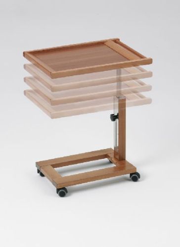 Massive Beech structure, Non- scratch laminated tray, Adjustable in more heights system, Anti-trace revolving wheels, Tilting Tray in both sides.