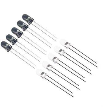This pair of High power directional IR LED and Filtered photodiode can be used in various kinds of sensing circuits. The narrow beam width IR LED emits focused IR light and the filtered photodiode filters out ambient light without need of any external circuit. When used with proper circuit it can give upto 200 mm of reflective sensing and can also be used in high speed applications like encoders.