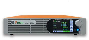 Contact SupplierPreen's AFV-P Series is a programmable AC power source with DC output and precision measurement. This compact power source provides clean power with THD less than 0.3% at 5060 Hz and it delivers output voltage of 0-310 V and frequency of 40-500 Hz (opt. 15-1000 Hz). It is ideal for commercial, defense and aerospace test applications from design verification, quality assurance, ATE to mass production. AFV-P series comprise measurement features of rms voltage, rms current, true power, apparent power, power factor, crest factor, reactive power and etc. Its 5" touch screen with rotary knob allows quick adjustments and configurations of voltage, current and frequency. Total 1200 test steps in 50 built-in memories and transient generation functions allow simulations of voltage variations, surges, drops and frequency disturbances. Users can set up starting and ending phase angle from 0 - 360 degrees and they can also remotely control AFV-P via standard interfaces. Free control software and LabVIEW driver are available for easy programming and remote control.