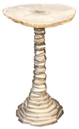 Introducing our stunning Agate Slice Metal Table, a decorative table piece that showcases natural agate colors. Each table is unique in size, varying based on the agate slice used. Packaged in standard packaging, this table will add a touch of elegance to any space.