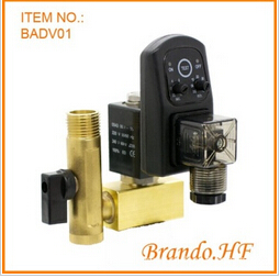 We are offering Air Compressor Auto Drain Solenoid Valve with Timer. Product Description Short Description: Air Compressor Auto Drain Solenoid Valve with Timer 1, Air compressor auto drain solenoid valve 2, With timer 3, Brass valve body Detailed Specifications: Technical Parameter for Timer OFF 0.5--45minutes ON 0.5--10seconds Voltage 24-240V ACDC 5060HZ Power Consumption 22VA Ambient Temperature -10--+60°c Insulation Class IP65 Plastic Material Fire resistance ABS Connecting Type DIN43650A LED Shining means with electricity