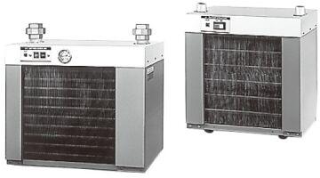 Can cool high temperature compressed air from compressors down to 40°C or less and efficiently remove moisture from the air. Cooling equipment is not required for this air cooled type. Maintenance is easy and the running cost is reasonable since this is free from concerns such as water supply cut-off or freezing.