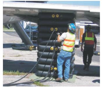 AIRCRAFT RECOVERY BAGS)COMBINATION OF 3 & 1 CHAMBER BAGS CAPACITY TO 45T OZONE / HC RESISTANT SERIES OF BAGS FOR COMPLETE AIRCRAFT RECOVERY LIFE EXPECTANCY OF 15 TO 20 YEARSÂ ACCESSORIESCYLINDERS, PRESSURE REDUCERS SINGLE / DUAL / TRIPPLE CONTROLLERS FOOT PUMP, HOSES & SHUT-OFF VALVESÂ