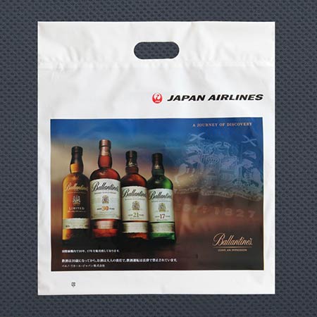 We are offering airline bag. bag-making process - side-seal; die cut handles printing process - intaglio printing, 1 to 12 colors (alcohol-soluble ink or water-based ink) film thickness - 0.03mm ~ 0.20mm optional dimensions - width: 120mm ~ 1000mm; height: 180mm ~ 700mm; upper folded: 40mm ~ 80mm; gusset: 30mm ~ 200mm size and shape of eye rings - can be customized monthly capacity - 6 million ~ 10 million(depending on product size and the thickness of the bag body)
