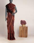 Ajrak Hand Block Zari Border Maheshwari Silk Saree With Blouse