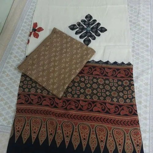 Ajrakh Printed Stylish Unstitched Suit, Technics : Machine Made