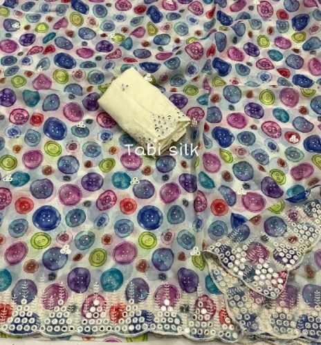 QUALITY Soft Tabi Silk Saree With Full C Pallu Embroidery Work Broder And Cut Work BLOUSE Perfectly Matched Contact Mulberry Silk With Embroidery Selves And All-over Embroidery Butt SAREE LENGTH 5.5 Meters BLOUSE LENGTH 1 Meter