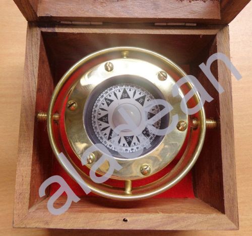 We are offering nautical gimbaled compass with glass top. We take pleasure in providing clients with charmingly designed gimbaled compass with glass top is a solid brass reproduction of an antique sailing ship cabin compass. made from high quality of heavy brass. maritime nautical working compass in a wood box and with a glass top. it is totally handcrafted and with an antique finish, working reproduction item. magnetic needle gives you exact direction. it a distinguished finish.
