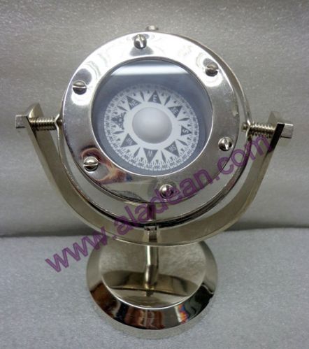 We are offering brass gimbaled compass. Gimbaled desk stand compass is a solid brass reproduction of an antique sailing ship cabin compass. The compass is mounted on a 360-degree double-gimbal ring system on a heavy brass base. The gimbaled ring design allows the compass to remain level regardless of the angle of the base. Available in : chrome, antique and polish finish.