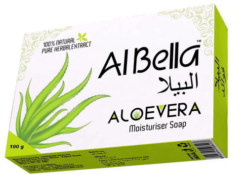 Product Details: Brand AlBella Pack Size 75g, 100g Pack Type 72pcs AloeVera soap is an anti-inflammatory, anti-bacterial and excellent for the relief of itching, acne, pimples and soothing for sunburned skin.