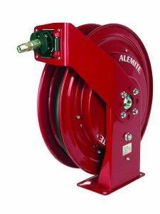 38' x 50' Air Water Reel. Ratchet prevents lockup when hose is fully extended eliminating the need to manually release reel. Swivel and reel ball bearings reduce torque load on power spring for smooth retraction & durability. Sealed bearings prevent contamination and minimize maintenance. Factory lubricated one-piece power spring cassette makes installation safer and maintenance easier. Heavy metal arbor design withstands extreme stress and eliminates breakage.