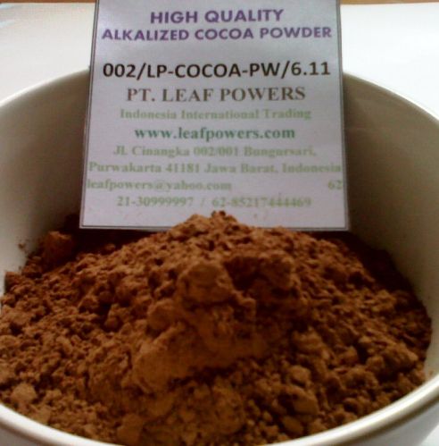 We are offering alkalized cocoa powder. high quality alkalized cocoa powder 002/lp-cp-al/12 physical and chemical characteristics: parameter index color brown flavor free from off flavours fat content (%) 10 – 12 % moisture (%) 5 % w/w max ph 6.5 – 7.5 particle size 99.00-99.99% pass through on bbs 200 mesh sieve shell content (%) 1.75% max microbiological characteristics parameter index total plate count < 5000 /gr salmonella absent in 50 gr/negative/nil e. Coli absent in 1