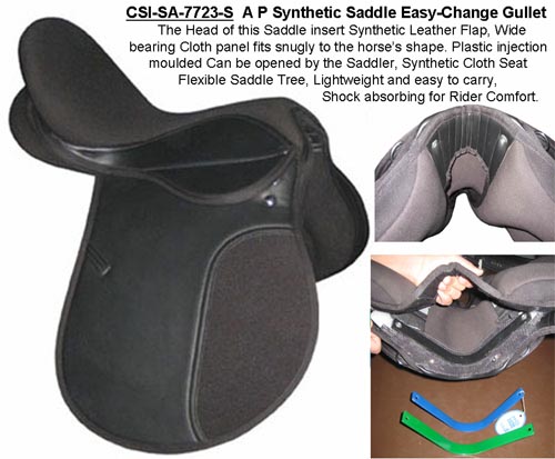 Contact SupplierEasy-change gullet system, all purpose synthetic saddle with moulded flexible saddle tree.synthetic cloth seat insert and synthetic leather flap, wide bearing panel fits snugly to horse's shape, lightweight and easy to carry, shock absorbing for rider comfort.