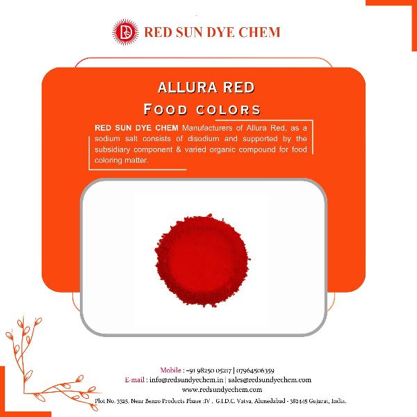 Contact SupplierRED SUN DYE CHEMĀ is one of the best leading Synthetics Organics food colors manufacturers in India. We are Providing Water Soluble Food colors As Synthetics Food Colors Supplier In India food colors that are widely used for as dyes in various industries such as food, pharmaceutical and cosmetic. As a known synthetic food colours manufacturers, and suppliers, Our food colours being easily soluble in water has wide application like in Foodstuff, Beverages, Animal feeds, Pharmaceuticals. Etc.