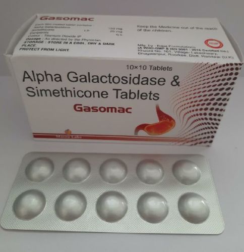 ALPHAGALACTOSIDASE 150MG+SIMETHICONE 25MG TAB, Color : White