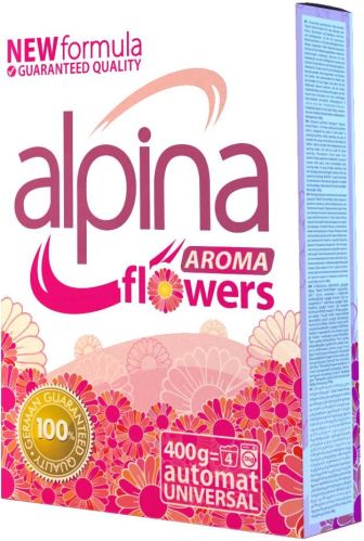 We are offering alpina aroma flowers washing powder - 0-4kg. High quality universal synthetic washing powder for color fabrics. High quality laminated carton pack. Strong fragrance (aroma series). Net weight 0.4kg. For automatic washing activity
