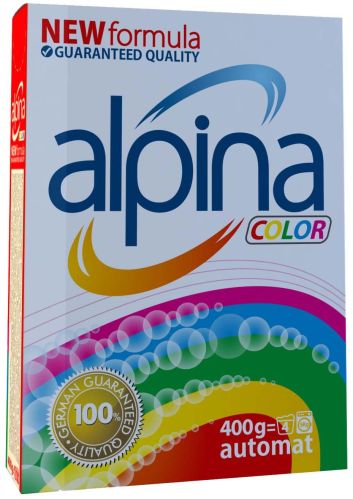 We are offering alpina color washing powder. High quality universal washing powder for all type of fabrics. For automatic washing. High quality laminated carton pack. Net weight 0.4kg. Activity