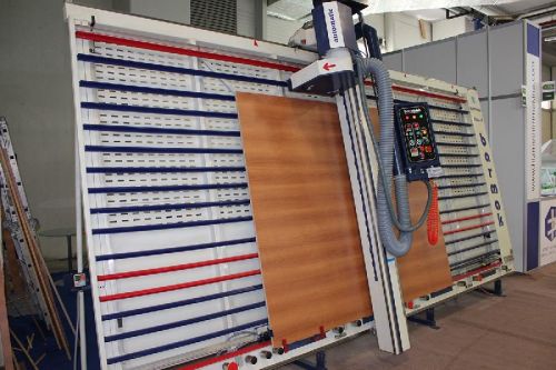 Vertical panel saw for aluminum composite panels. Cutting and grooving features. Machines are equipped with dust collection system and pneumatic operated switch of cutting to grooving or vice versa mode.
