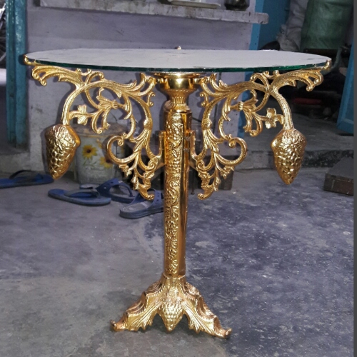 Decorative multipurpous table (garden tea table,corner table,center table etc)table size (24"×24")round, height 24"metal aluminium gold plated finish.