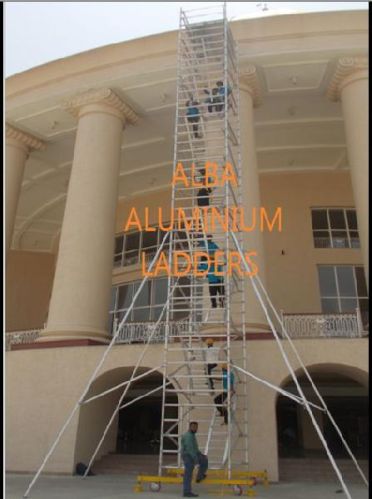 Contact SupplierMobile Scaffolding Tower Ladder Multi-purpose and light weight, scaffolds can be used as static or mobile towers and facade scaffolds with other limitless applications. Able to reach a maximum height of 20mtr, bigger base for added stability, Light weight, Colour coded braces for easy identification, ribbed tube on horizontal rungs, non-slip. Solid case splined spigot, profile enables easy fit operation, Rubber swiveling base on stabilizers, secure ground contact. Self locking braces hooks with ergonomically designed release latch Ladder frame construction combines increased strength and durability!