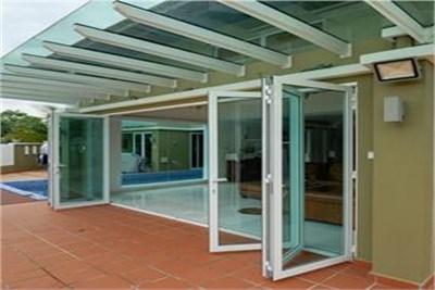 Aluminium Three Fold Sliding Folding Shutter Doors system permits the construction of three fold sliding folding doors. Raw Material: Aluminium: Hindalco extruded aluminium sections – in Alloy 6063 and Temper –T6. Conforms to IS: 733 and IS: 1285 Gaskets: All rubber gaskets are weather resistant (-40°C to +80°C) EPDM Gaskets.