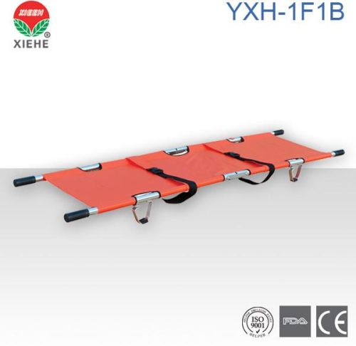 Aluminum folding stretcher yxh-1f1b detailed product description: *this stretcher with outriggers and can be folded. *it is made of high strength aluminum alloy material and pvc materials. *it has characterizes of light-weighted, small-sized, easy-carried, reliable quality, use-safely and easy for sterilization, etc. *it is commonly used in hospital, gymnasium, ambulance, and battle fields to carry patients and wounded person.