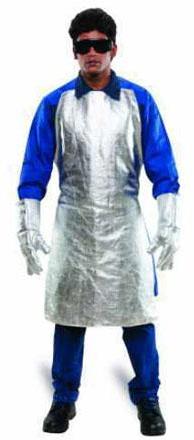 Apron : One-piece aluminised bib type back open Applications : These are extensively used for protection from heat, metal splash, welding among others.