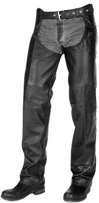 We are offering american chap. "good quality leather 1.2mm thick jean style cut perfect for motorcycle riding soft and good quality leather with silver ziper and hardware good quality mesh lining. Bottom is unfinished for trimming to correct size. 4 button on legs for easy on & off on boots. Adjustable waist zipper cover on each legs."