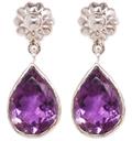 We are offering amethyst drop earrings. Beautifully cut amethyst drops pair up with silver flowers to create these simple earrings of obvious feminine beauty.