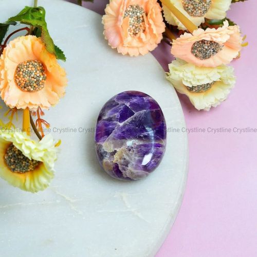 Amethyst specially shaped into a smooth, palm–fitting crystal to help you relax and stay grounded throughout the day. It balances your crown chakra and helps soothe any anxieties or worries you may have, encourages courage and inner strength, stimulates creativity, alignment and connection with higher realms.