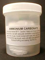 ammonium bicarbonate is used in the food industry as an raising agent for flat baked goods, such as cookies and crackers, and in china in steamed buns and chinese almond cookies. It was commonly used in the home before modern day baking powder was made available. In china it is called edible or food-grade "smelly powder". Many baking cookbooks (especially from scandinavian countries) may still refer to it as hartshorn or hornsalt (e.g., no: "hjortetakksalt", se: "hjorthornssalt", "salt of hart's horn") in many cases it may be substituted with baking soda or baking powder or a combination of both, depending on the recipe composition and leavening requirements. Compared to baking soda or potash, hartshorn has the advantage of producing more gas for the same amount of agent, and of not leaving any salty or soapy taste in the finished product, as it completely decomposes into water and gaseous products that evaporate during baking. It cannot be used for moist, bulky baked goods however, such as normal bread or cakes, since some ammonia will be trapped inside and will cause an unpleasant taste.