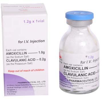 We are offering amoxicillin sodium injection for 0.6g vial, each vial contains 500mg amoxicillin (as sodium salt) and 100mg clavulanic acid (as potassium salt). For 1.2g vial, each vial contains 1000mg amoxicillin (as sodium salt) and 200mg clavulanic acid (as potassium salt). Each ml of reconstituted solution contains 50mg amoxicillin (as sodium salt) and 10mg clavulanic acid (as potassium salt).