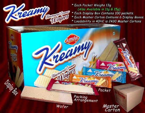 Contact SupplierAmulya Kreamy Cream Wafers Delicious Crispy and Tasty Wafers. Three Layered Cream Wafer biscuits very good in appearance with shape and colour. and pleasant odour with flavour.Our Kreamy Cream Wafers available in many