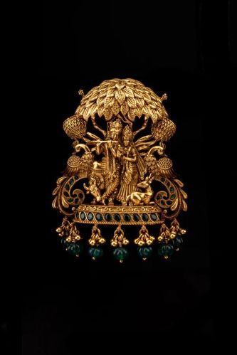 Contact SupplierAnaisha silver pendant, a classic addition to your collection crafted from 92.5 silver with gold plating. The pendant features an intricate Radha Krishna design adorned with emerald stones, which gives it an elegant look. This gold-plated silver pendant is perfect for all your traditional attire.