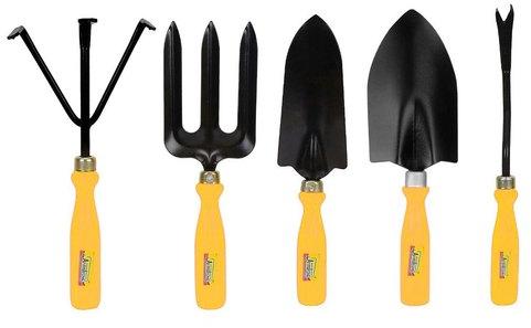 ▶️Number of Tools: 5 ▶️Sales Package 1 Trowel, 1 Cultivator, 1 Transplanter, 1 Weeder, 1 Fork ▶️Plastic handles Better grip ▶️Lightweight gardening tool