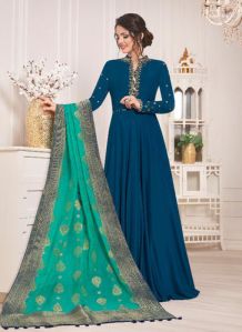 Contact SupplierAn Anarkali salwar suit is a form of women's dress which has recently made its way back to the Indian fashion scene. The anarkali suit is made up of a long, frock-style top and features a slim fitted bottom.The anarkali is an extremely desirable style that is adorned by women located in Northern India, Pakistan and The Middle East. The anarkali suit varies in many different lengths and embroideries including floor length anarkali styles. Many women will also opt for heavier embroidered anarkali suits on wedding functions and events. Indian women wear anarkali suits on various other occasions as well such as traditional festivals,casual lunch, anniversary celebrations etc. The kameez of the anarkali can be sleevelesss or with sleeves ranging from cap- to wrist-length.