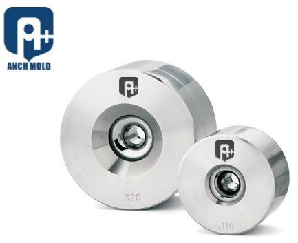 Wire dies used for manufacturing wire from rod-size to ultra-fine wire, with at its heart a diamond or tungsten carbide blank. Sizes of 76.2 mm (3â) down to 0.02mm (.000079â) are available.